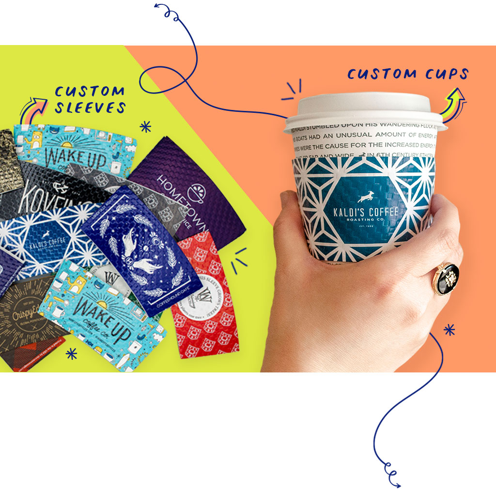 - Custom Coffee Sleeves – Available in kraft, white, and premium finishes. Choose digital or flexographic printing, with options for variable messaging on every sleeve.